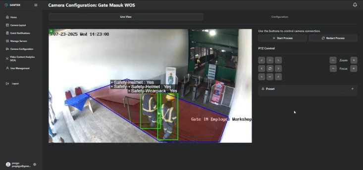 Implementasi PPE Detection untuk Helmet, Vest dan Wearpack di site Berau Kalimantan Timur, divisi HSE dapat memonitor vendor atau pekerja secara otomatis dari jarak jauh